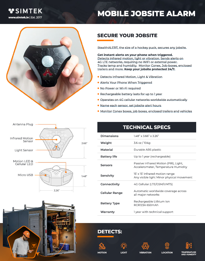 StealthALERT, the size of a hockey puck, secures any jobsite.